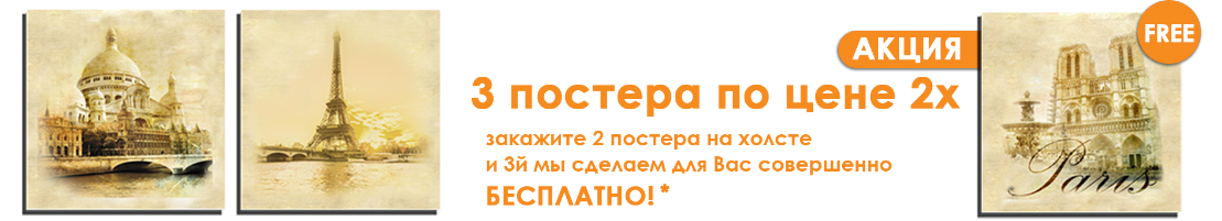 Вы заказываете 3 постера на холсте, а оплачиваете только 2!