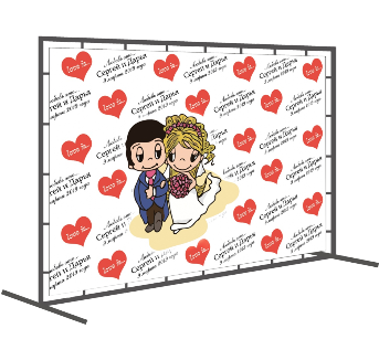 Такой баннер отлично подойдет для оформления выставок, торговых павильонов внутри торговых центров, в качестве декораций, для оформления свадебной или другой праздничной фотозоны и т.п.