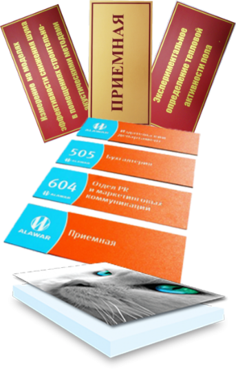 Интерьерные полноцветные таблички и панели на ПВХ или сотовом полипропилене.